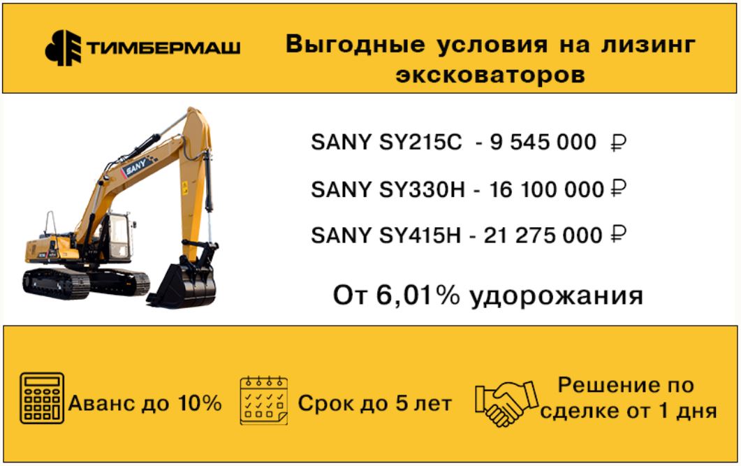 Для тех, кто планирует приобрести экскаватор, у нас есть предложение - выгодная программа по приобретению экскаваторов SANY моделей 215C, 330H и 415H. Совместно с лизинговой компанией «ДельтаЛизинг» по всей территории Дальнего Востока согласованы специальные условия финансирования!